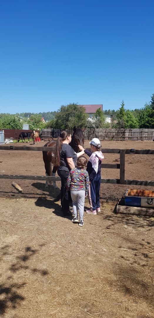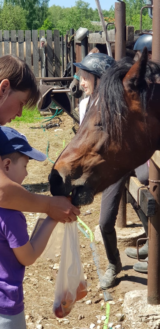 Сегодня наши воспитанники подготовительной группы 10 (воспитатель Шупова Н.М.) посетили клуб "Конный двор Иваново". Хозяйка клуба Надежда Евгеньевна радушно встретила нас, доступно и интересно рассказала детям о своих питомцах - красавцах, провела мастер - класс для детей, где они почувствовали себя в роли наездников и с успехом преодолевали препятствия на своих "лошадках", ну и,конечно, не обошлось без катания на лошадях. В завершении экскурсии дети угостили питомцев сладкой морковкой и яблоками.