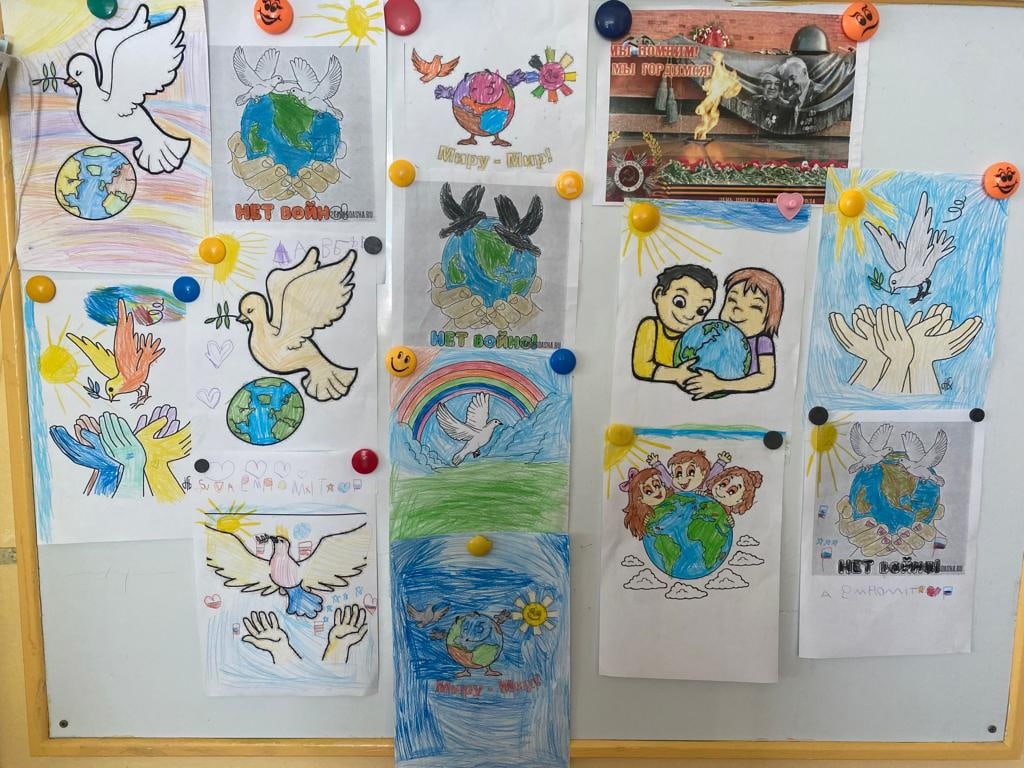 Детям было предложено сделать плакаты под лозунгом - " Мы голосуем за мир!"