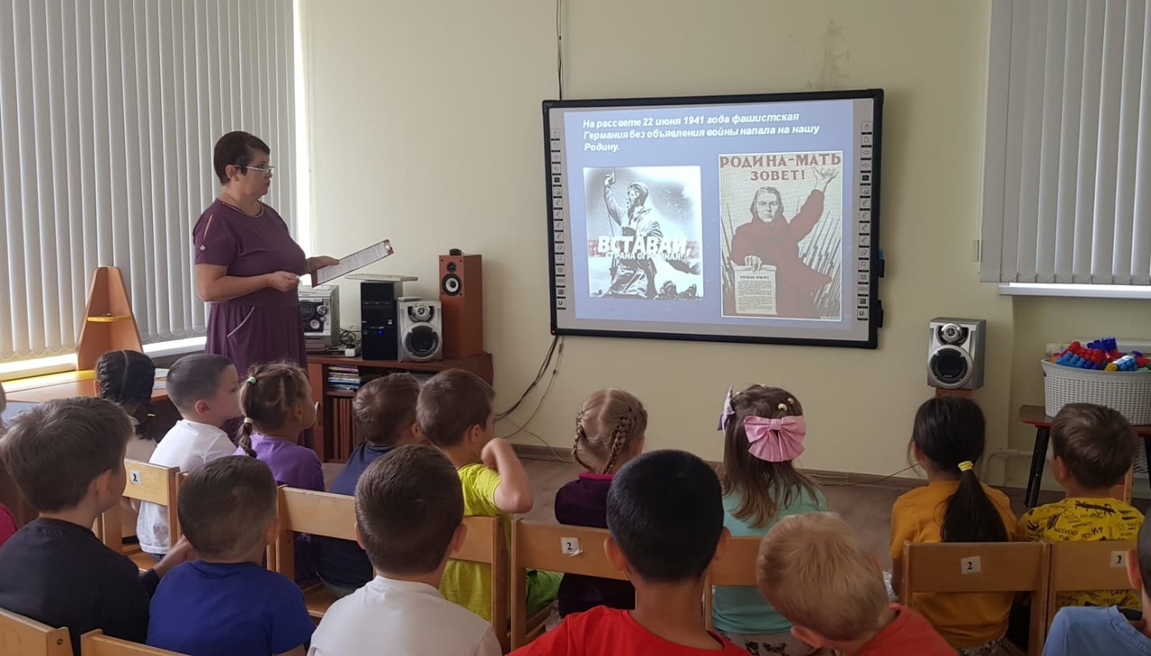 22 июня 1941 года - одна из самых скорбных дат. Это день начала Великой Отечественной войны. Во всех городах России с болью вспоминают эту страшную войну. В рамках реализации годового плана в нашем саду прошел День памяти и скорби. С детьми старшего дошкольного возраста было проведено тематическое мероприятие с целью воспитания чувства патриотизма у детей. Детям была показана презентация "22 июня - День памяти и скорби". Дети прослушали голос Левитана с сообщением о начале войны, известную песню "Священная война", узнали о создании плаката "РОДИНА - МАТЬ ЗОВЁТ!", поиграли в игру " В Армии служат разные войска", почтили минутой молчания память защитников Отечества и в заключение спели песню" Пусть всегда будет солнце".
