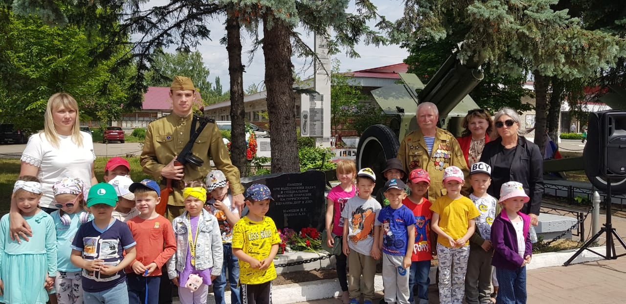 А в 11.30 наши дети с педагогами приняли участие в митинге и Всероссийской акции "Минута молчания" у обелиска памяти п. Вольгинский и возложили цветы к памятнику погибших воинов.