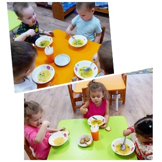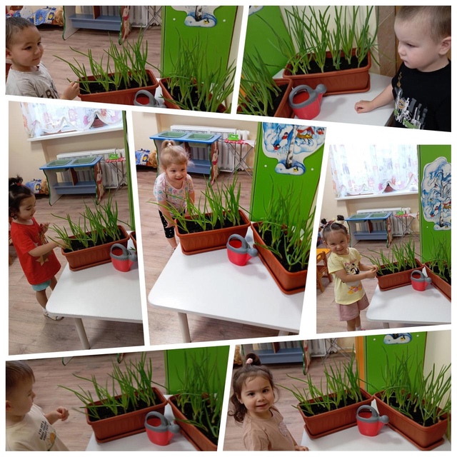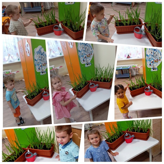 В течение двух недель ребята заинтересованно наблюдали за появлением зеленого лука, его ростом, поливали из лейки и, наконец, дождались дня, когда срезали первые перья лука. Малыши рассмотрели срезанный лук, почувствовали его запах и, конечно же, попробовали на вкус в ароматном супе.