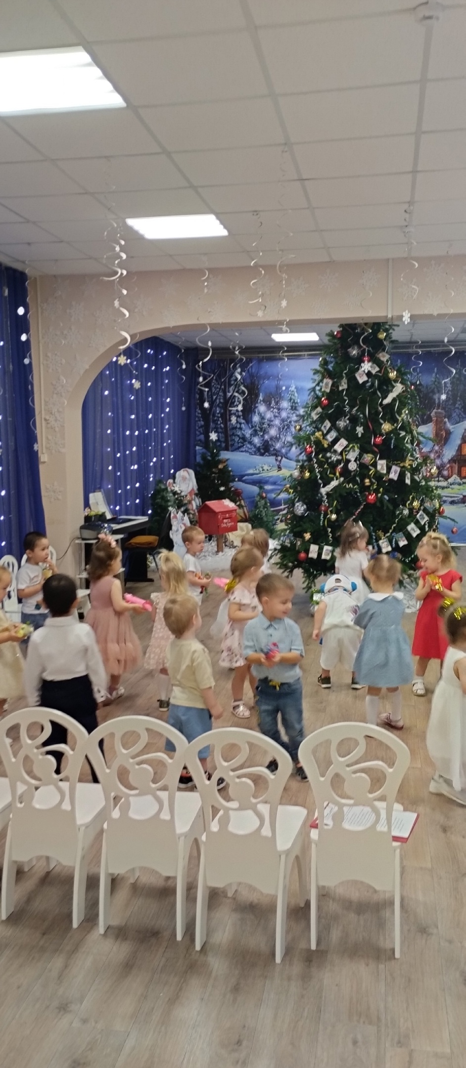 Завершающее мероприятие прошло в младшей группе №4 "Грибочки ", дети станцевали для ёлочки, зажгли на ней огни.