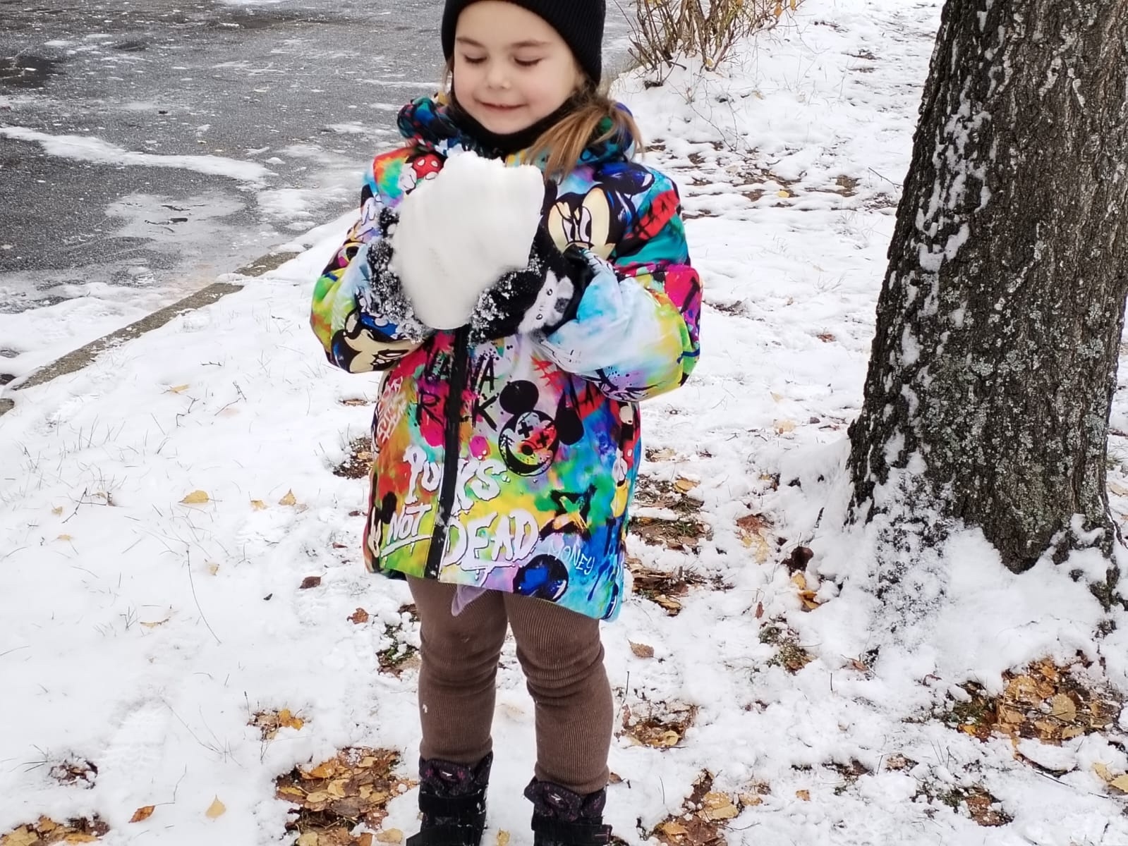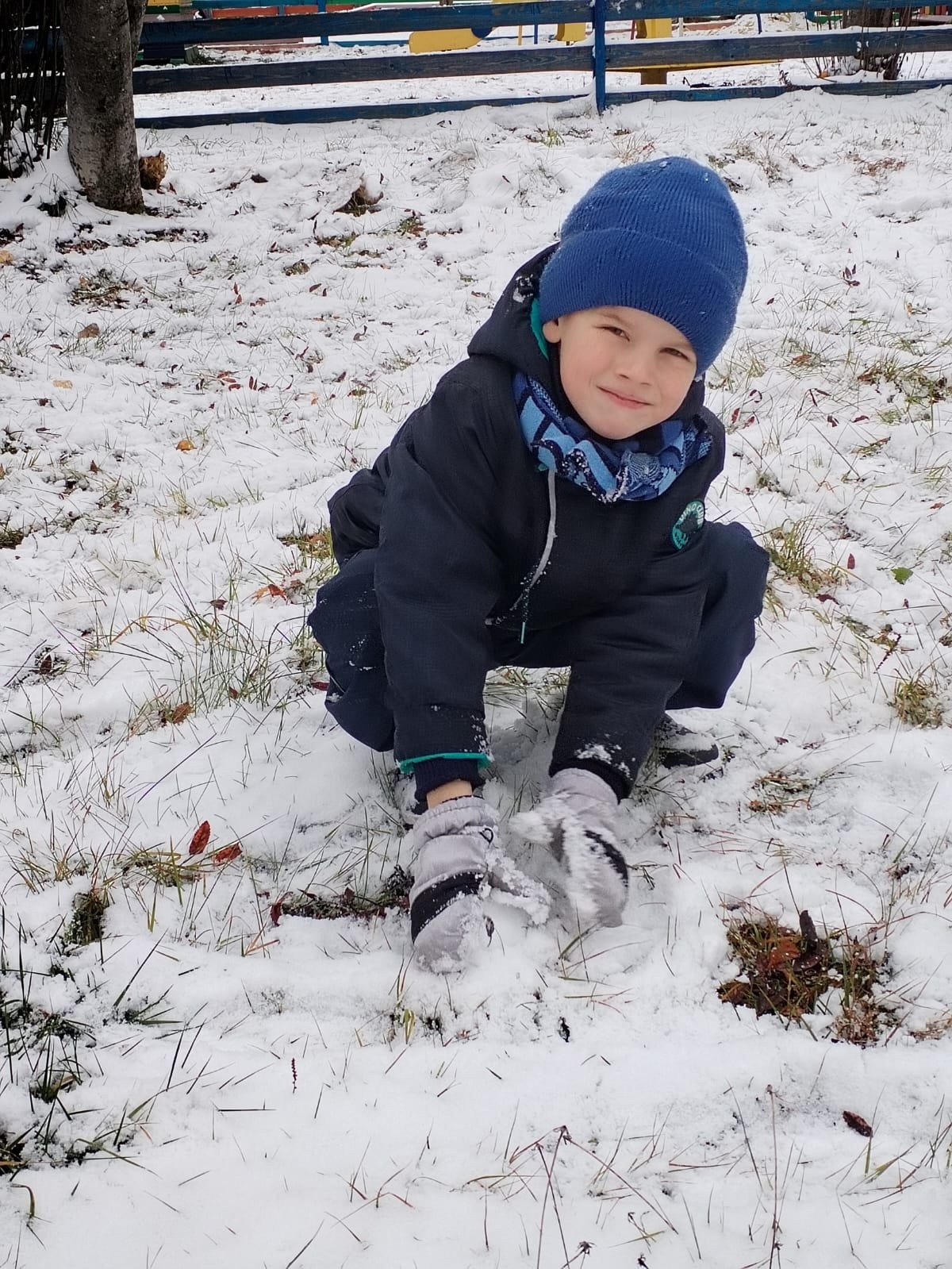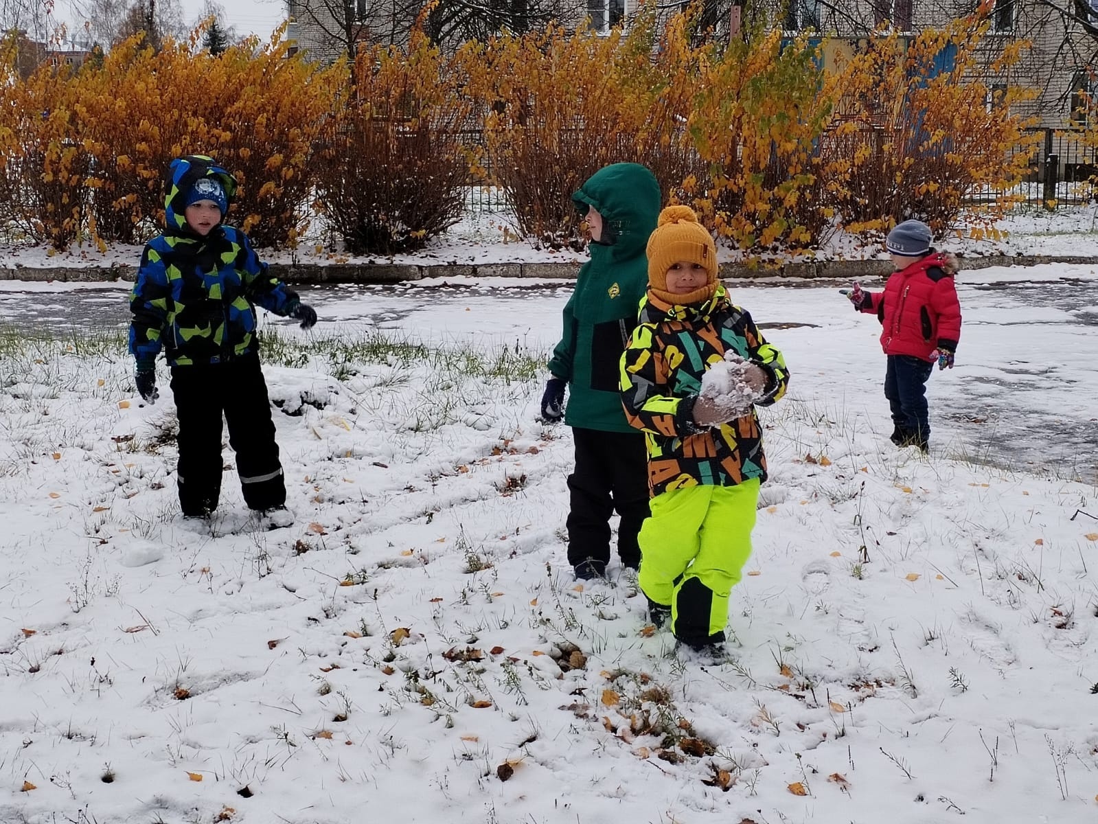 Воспитанники старшей группы №8 вместе с Татьяной Николаевной радуются первому снегу!