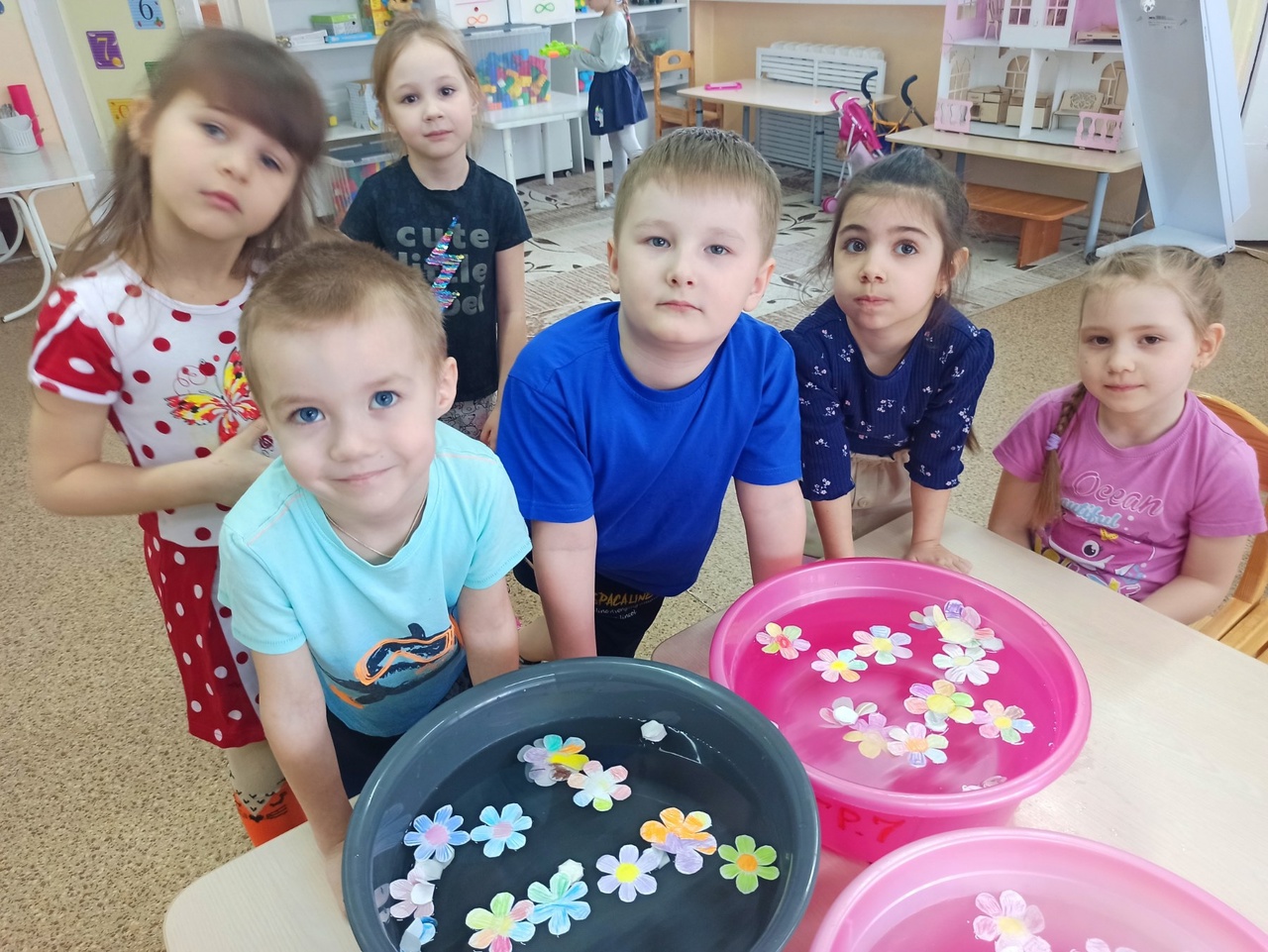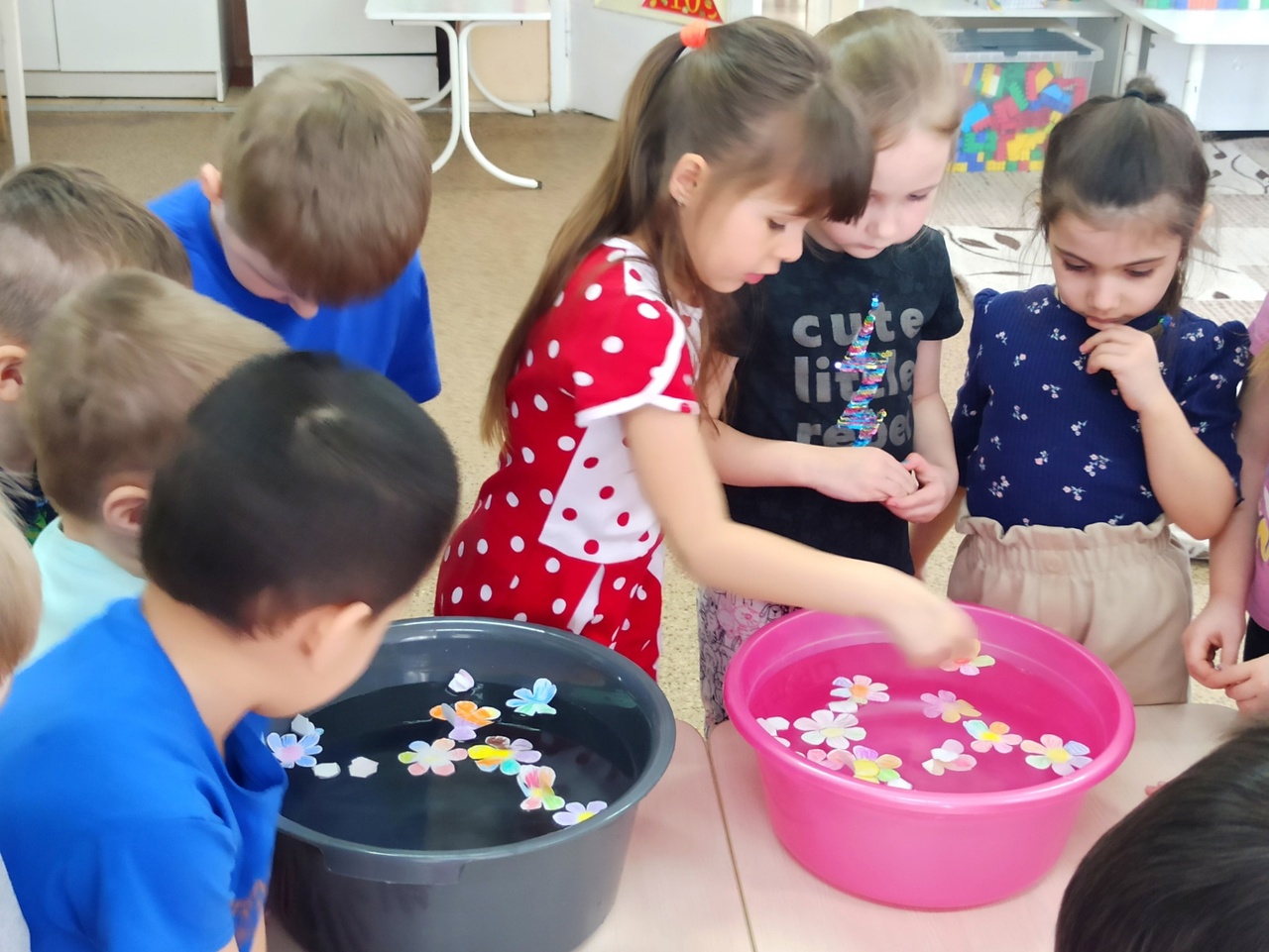 Дошкольники по природе своей - пытливые исследователи окружающего мира. В основе экспериментальной деятельности дошкольников лежит жажда познания, стремления к открытиям, любознательность, потребность в умственных впечатлениях, и наша задача - удовлетворить потребности детей, что в свою очередь приведёт к их интеллектуальному и эмоциональному развитию. Так в средней группе 7 педагог Полежаева А. С. часто проводит со своими воспитанниками игры - эксперименты. Вот и сегодня они принимали участие в эксперименте "Цветы в воде". Дети наблюдали, как бумажные цветы распускаются в воде.