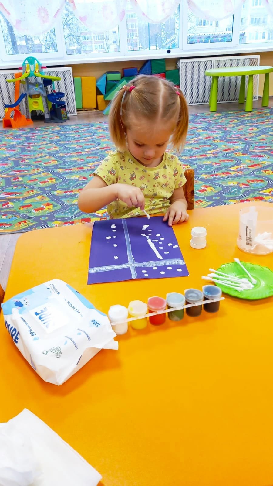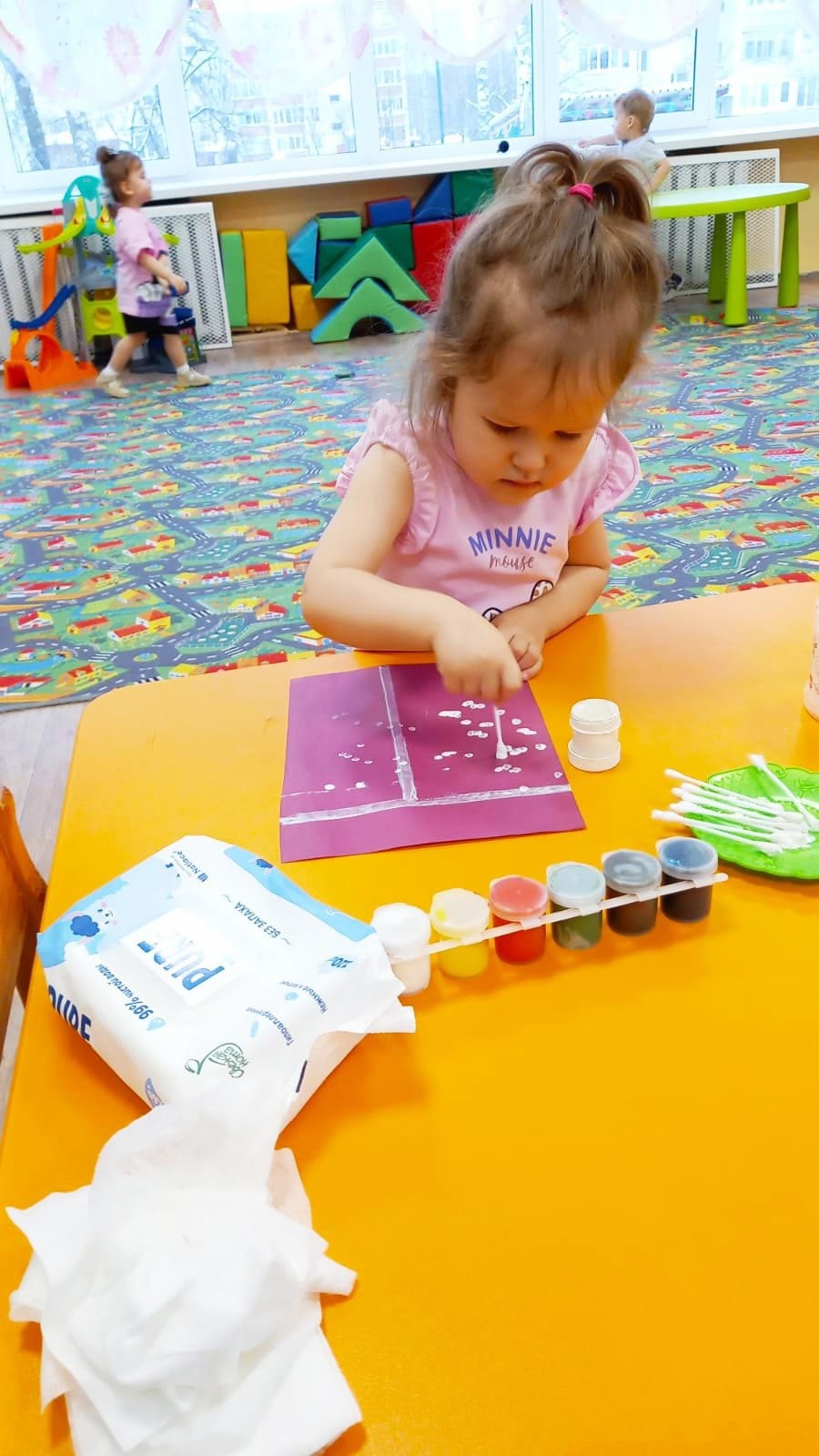 Нетрадиционная техника рисования ватными палочками в младшей группе №4 под руководством Людмилы Сергеевны.