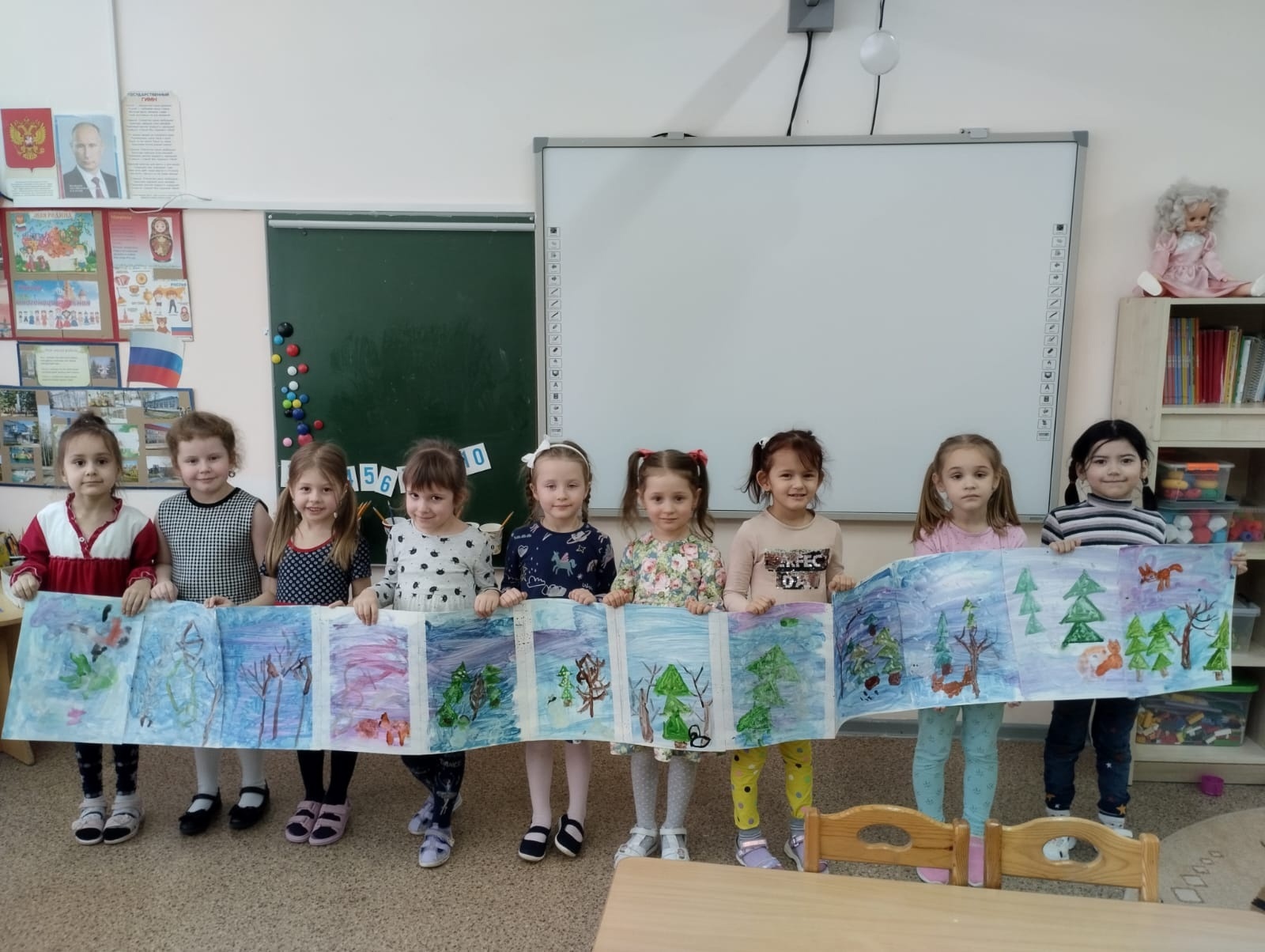 КОЛЛЕКТИВНАЯ РАБОТА "ЗИМНИЙ ЛЕС"